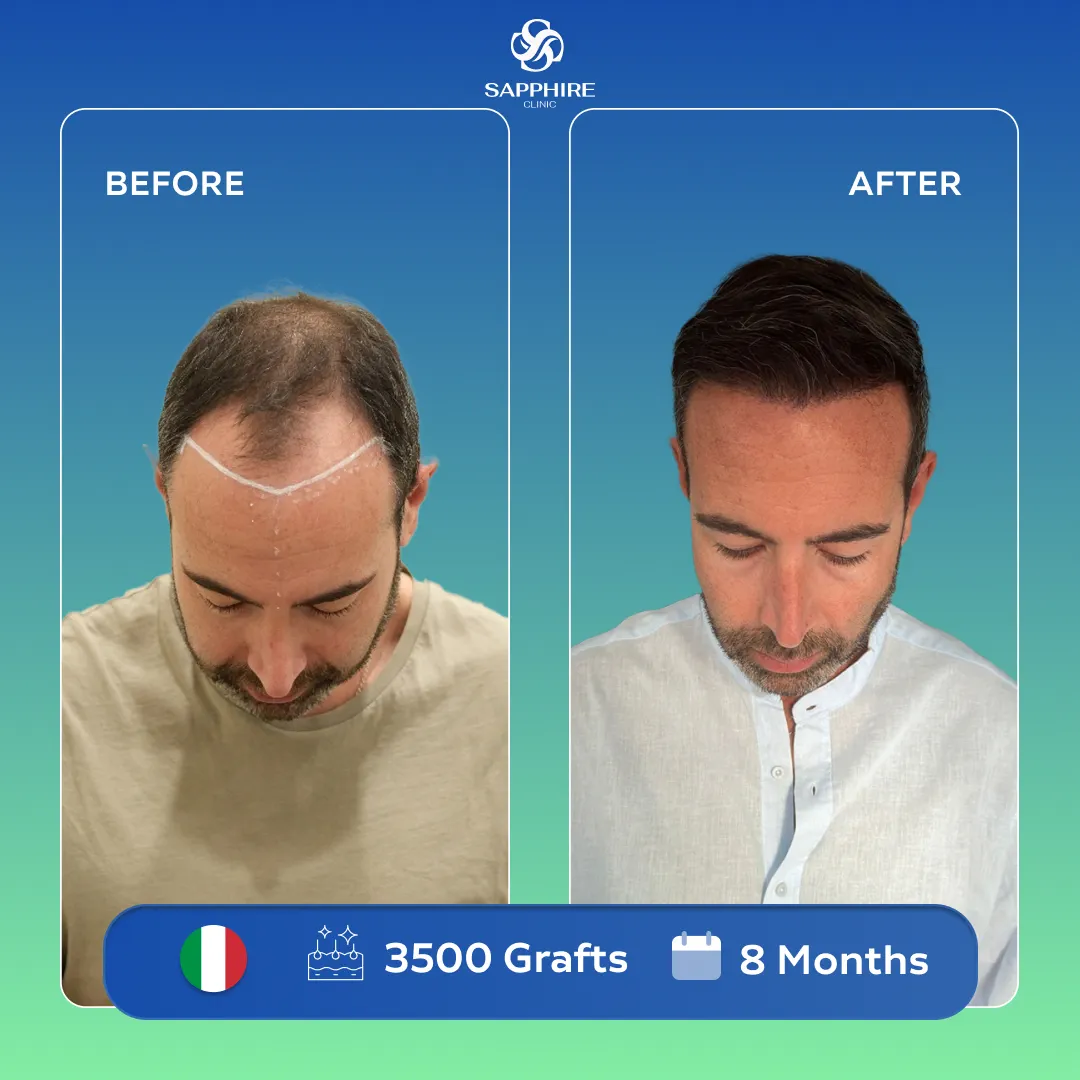 Sapphire Hair Clinic realiza sus operaciones en su propia clínica y ha recibido el premio a la mejor clínica de trasplante capilar en Turquía y España con una tasa de éxito superior al 99%.¿Cuántos folículos te ponen en Turquía?